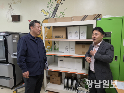| 28일 중소벤처기업진흥공단 호남연수원에서 열린 광주 청년창업사관학교 현장 간담회에서 최승재 중소기업 옴부즈만이 청년창업사관학교를 둘러보고 있다. |