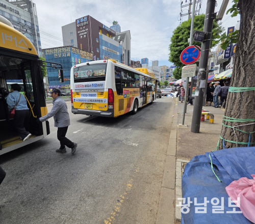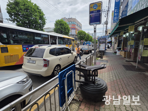 광주 시내버스 정류장 주변 불법 주·정차가 좀처럼 근절되지 않으면서 시민 안전을 위협하고 있다.