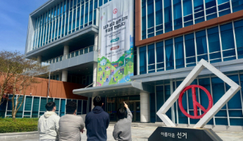 전남선관위, 청사 외벽에 지방선거 홍보 현수막 게시