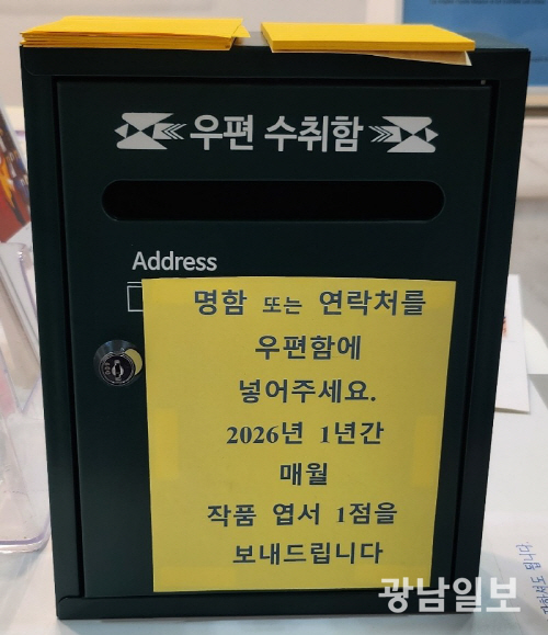특히 방문객들 중 부스에 설치된 우편함에 명함이나 연락처를 넣은 사람들을 대상으로 2026년 1년 동안 매월 작품 엽서 1점을 보내주기 위한 목적으로 우편함을 설치 운영해 주목을 받았다. 이번 참여 갤러리 중 유일하게 우편함을 도입해 관람객이나 소장자 등과 적극적 소통에 나서 눈길을 붙잡았다.