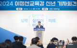 김인수 기자 joinus@gwangnam.co.kr2024.01.02 17:55이정선 광주시교육감은 2일 “새해 광주교육은 ‘다시, 교육의 본질’을 기치로 다양한 실력이 싹을 틔우고 미래의 꽃을 피우겠다”고 밝혔다. 이날 오전 시교육청 대회의실에서 열린 신년 기자회견에서 이 교육감은 “지금까...