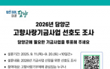 함평=최일균 기자 6263739@gwangnam.co.kr2025.09.16 09:24담양군은 내년 고향사랑기금사업 선정에 기부자와 군민의 의견을 반영하기 위해 오는 20일까지 ‘담양군 고향사랑기금사업 선호도조사’를 진행한다. 이번 조사는 기금 운용의 투명성을 확보하고 기부 취지에 맞는 사업을 선정...